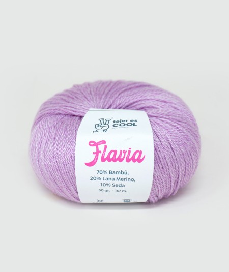 Flavia es una fibra fresca ideal para tejer en la temporada de Primavera/Verano. Es el producto con más porcentaje de Bambú del mercado, que es complementado por la  exquisita finura del 20% de  lana merino y el brillo incomparable que le aporta  el 10% de Seda